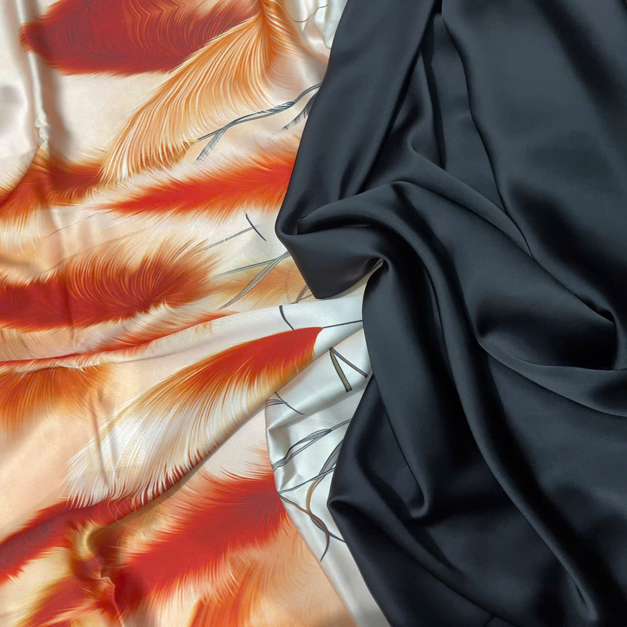 + vải Lụa Tô Châu In 3D : vải mềm mịn, rủ co dãn nhẹ 2 chiều, vải dày dặn, màu sắc hoạ tiết in sắc nét, vải bền đẹp, mặc thoải mái, Vải có độ bóng nhẹ sang trọng.